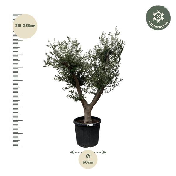 • Uiterlijk van de plant: De Olea Europaea, ook wel de olijfboom genoemd, heeft een elegante uitstraling met zijn smalle, zilvergroene bladeren. De boom heeft een stevige, twistige stam en kan in de juiste omstandigheden een mooie, volle kroon ontwikkelen.