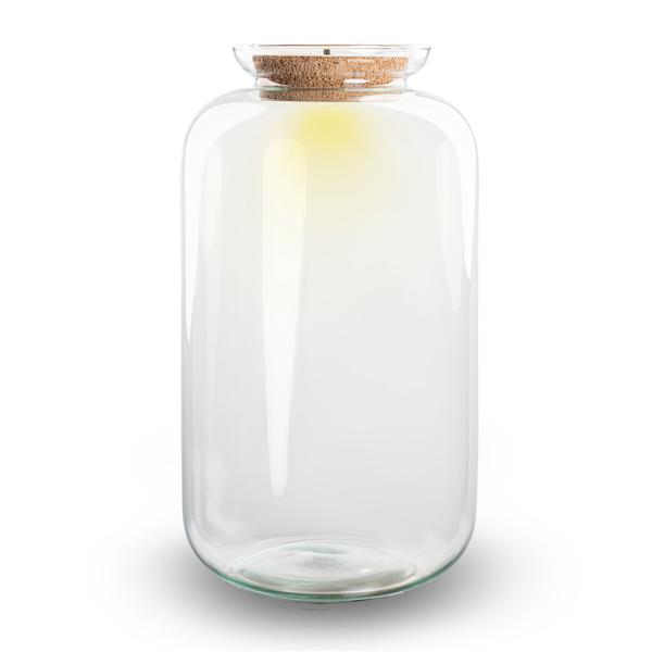 Terrarium fles met verlichting in de kruk. Gemaakt van gerecycled glas.